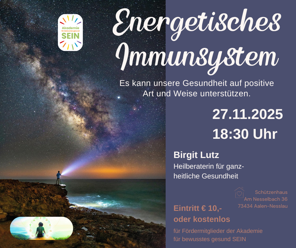 Für Fördermitglieder der Akademie für bewusstes gesund SEIN sind die Vorträge und Veranstaltungen kostenlos.