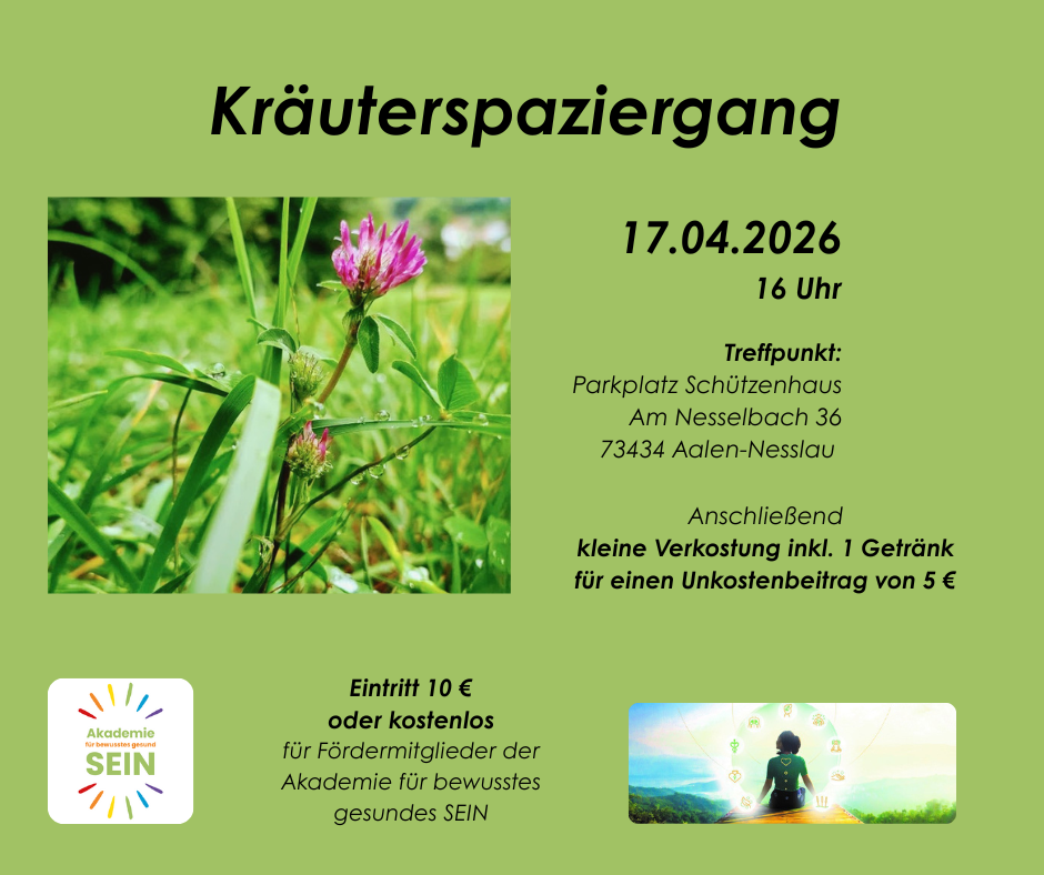 Wir treffen uns am Parkplatz vom Schützenhaus und werden von dort aus den Kräuterspaziergang starten und beenden.
