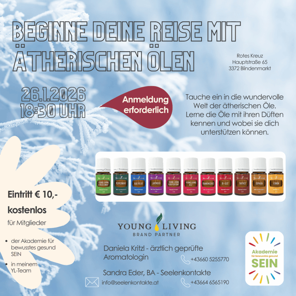 Tauche ein in die wundervolle Welt der ätherischen Öle. Lerne die Öle mit ihren Düften kennen und wobei sie dich unterstützen können. Besonders in der kalten Jahreszeit sind sie wunderbare Begleiter.